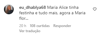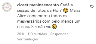 Com a repercussão destes comentários, logo pela manhã a influenciadora postou em seus stories dizendo que a festinha de mesversário da caçula será hoje, devido ao cansaço de todos da família na noite anterior.