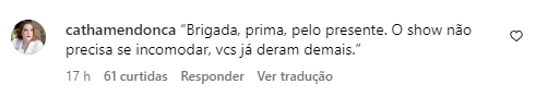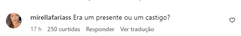 Após revelar qual foi o seu presente para os pombinhos, como já era esperado, os internautas não tiveram papas na língua na hora de comentar, ou melhor, criticar, sobre o assunto. Confira alguns dos melhores comentários que está circulando na web: