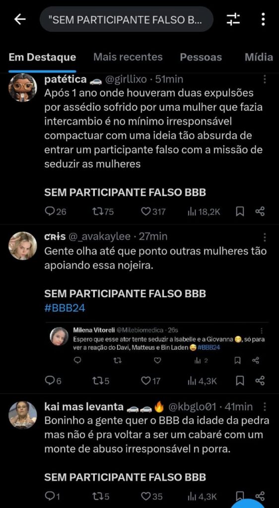Em comentários que estão circulando a internet, os internautas estão puxando a #SEMPARTICIAPANTEFALSOBBB, especialmente pelo fato de que Boninho afirmou que o argentino entrará na casa para “seduzir” as participantes do programa.
