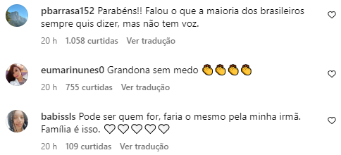 Confira alguns dos centenas de comentários que os internautas deixaram na publicação de Bianca: