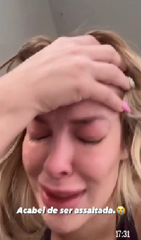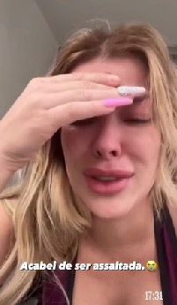 No relato, a influenciadora aparece aos prantos, desesperada e afirmando que chegou a reagir ao assalto mesmo após ver que o criminoso estava armado.