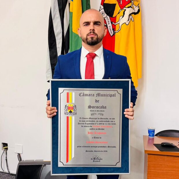 Reconhecido pela Forbes na categoria IUnder 30 por sua trajetória empresarial, Krigsman afirma que o título de Cidadão Sorocabano tem um peso especial. “Recebi com surpresa e gratidão. Não é algo que se busca, é algo que se recebe. E quando vem, vem com peso e significado”, reflete.