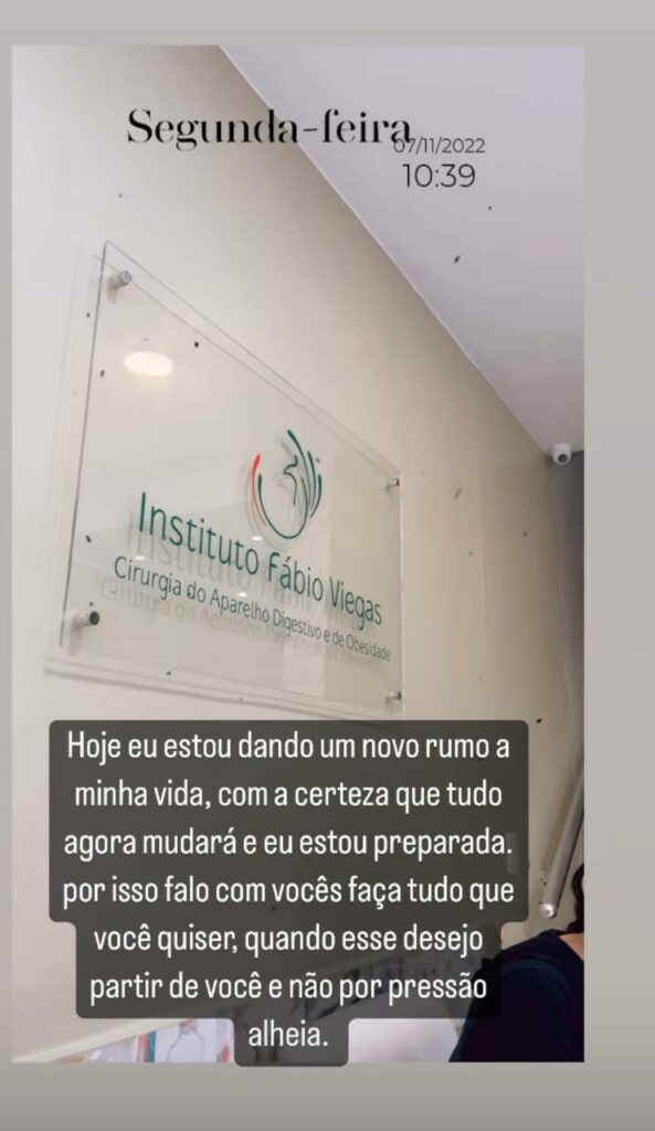 Na manhã desta segunda-feira, a cantora e apresentadora Jojo Todynho publicou em seus stories, uma foto em um consultório médico especializado em cirurgia do aparelho digestivo e obesidade, com a seguinte legenda: “Hoje eu estou dando um novo rumo à minha vida, com a certeza de que tudo agora mudou e que eu estou preparada. Por isso, falo com vocês: faça tudo que você quiser, e quando esse desejo partir de você e não por pressão alheia.”