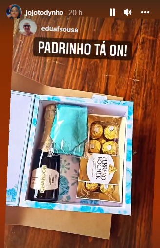 Os padrinhos do casamento já começaram a receber uma caixa especial com direito a Ferrero Rocher e Chandon. Reprodução