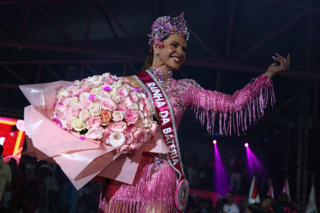A noite de sábado (11) foi marcada por muito samba, emoção e brilho na quadra da Unidos do Jacarezinho. A apresentadora e influenciadora recebeu oficialmente a coroa de Rainha de Bateria das mãos de David Brazil, em uma cerimônia repleta de energia e afeto da comunidade.
