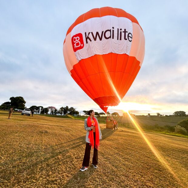 A influencer e embaixadora do Kwai Kerline Cardoso foi convidada para uma ação inédita e inusitada: participar de uma ação de divulgação do Kwai Lite em Boituva, no interior de São Paulo, a fim de provar que o novo app é mesmo leve e garante altos voos – e muito conteúdo — sem travar. Juntamente com a agência DM9, o Kwai envelopou um balão para que a influenciadora pudesse gravar conteúdos a muitos metros de altura, dentro da estrutura em pleno voo.