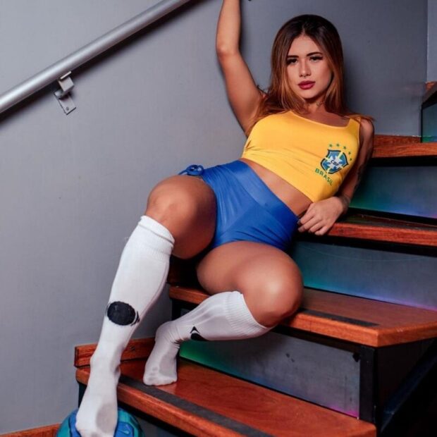 Mas o futebol não é só sobre resistência. Larissa brinca que ele também ajuda a esculpir seu corpo, especialmente pernas e glúteos. “A maioria dos jogadores tem uma bunda bonita e pernas torneadas, né? É só ver o Hulk, por exemplo. Ele tem uma bunda grande e bem definida, além de pernas musculosas. Eu percebo que, com os treinos de futebol, minha bunda e minhas pernas estão ficando mais bonitas e firmes. É uma das grandes vantagens de praticar o esporte.”