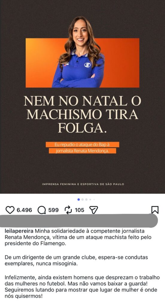 A fala de Leila não é lacração de rede social. É posicionamento institucional. É dirigente de clube gigante dizendo, com todas as letras, que ofender mulher não é debate esportivo, é machismo. Que atacar aparência não é argumento. Que jornalista não está ali para agradar cartola nervoso.