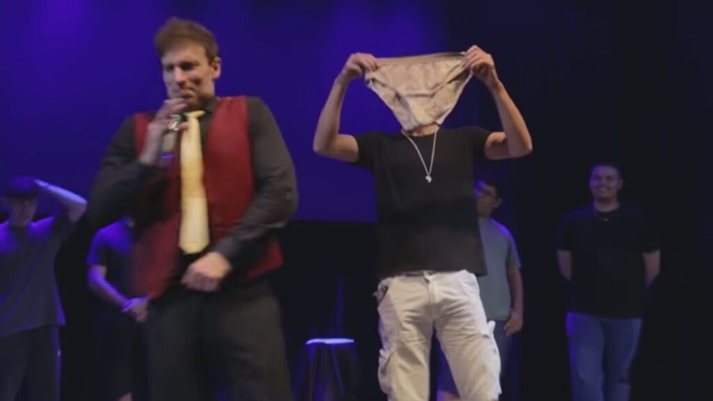 Em um momento de seu show humorístico, Lins propôs uma dinâmica que iria premiar o melhor talento da plateia. De acordo com o vídeo, seis homens foram escolhidos para exibir seus ‘dons’ incomuns, entre eles, um contou que tinha vocação de dobrar calcinhas.
