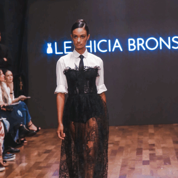 Na quarta-feira, Lethicia abriu as celebrações de duas décadas com o desfile “Lace Affair Since 2006”, apresentando 17 looks onde a renda preta foi protagonista absoluta, aparecendo em vestidos, tops, corsets, saias, calças e sobreposições em tule. A proposta misturou alfaiataria estruturada com fluidez e transparência, gravata como elemento de poder em peças historicamente associadas ao feminino, corseteria no lugar certo, e silhuetas pensadas para uma mulher que ocupa espaço sem pedir licença. A trilha sonora reuniu Madonna, Lady Gaga, Beyoncé, Aretha Franklin, Anitta e Marina Lima, o que é basicamente um manifesto em formato de playlist.