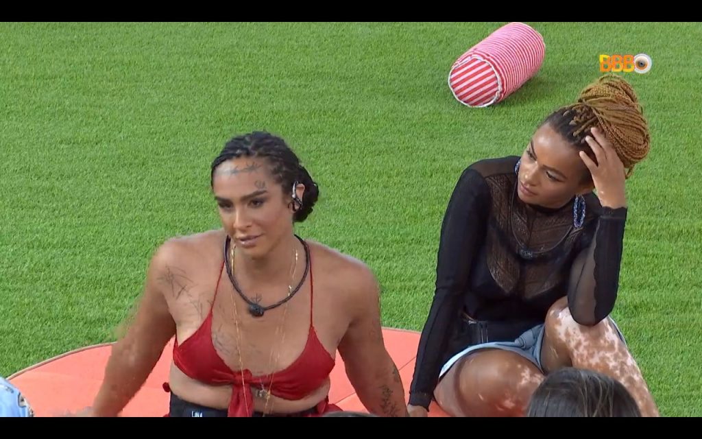 Mais tarde, em conversa no gramado, Linn revelou que já notou que as pessoas não se preocupam com ela e sim, com o público. “As pessoas ficam ‘Ah, será que eu falei algo de errado?’, as pessoas não estão preocupadas comigo, estão querendo se proteger. Com medo do que o público vai achar”. Será que ela está falando de Laís? Que a chamou de ‘ele’ no torpedo e só se justificou depois que Tadeu comentou sobre o pronome que deve chama-la? Hm, estamos de olho.