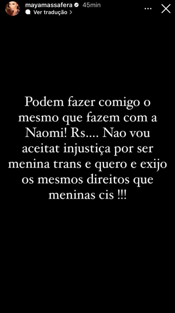 Só que na manhã deste sábado (1), Maya revelou que se sentiu usada pela revista por ser aproveitar da sua recente transição de gênero edisse que vai processá-los por transfobia.