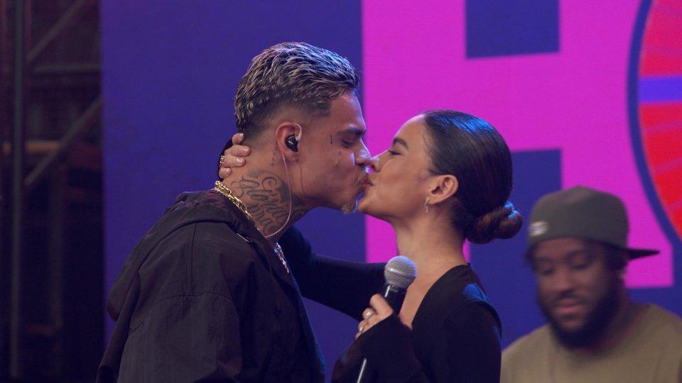 Cabelinho cantou “Minha Cura” para a atriz, enquanto ela recitou a letra de”Bem Melhor”.
