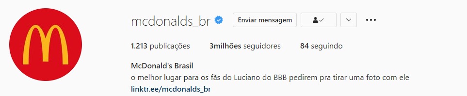A rede de fast food escreveu em sua bio no Instagram (@mcdonalds_br): “o melhor lugar para os fãs do Luciano do BBB pedirem pra tirar uma foto com ele”. O que rendeu diversas risadas dos internautas pela inteligência do marketing.