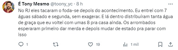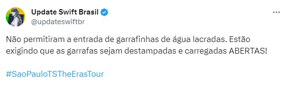 Mesmo após o Ministério da Justiça e da Segurança Pública ter determinado que a entrada de águas em shows estava autorizada, por alguns minutos, a polícia, que fazia a segurança do estádio do Palmeiras, proibiu a estrada de garrafas no local, o que causou uma baita confusão, que foi compartilhada por fãs da cantora no Twitter.
