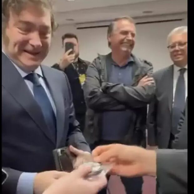 Gente, isso realmente aconteceu? Eu tô vendo, mas sigo sem acreditar nisso. Parece que o ex-presidente Jair Bolsonaro (PL) teria presenteado presidente da Argentina, Javier Milei com uma medalha com três “Is”, de imbrochável, imorrível e incomível. Bolsonaro costuma presentear seus aliados com esse pequeno mimo, como fez com o ex-prefeito Ricardo Nunes (MDB) no mês passado.