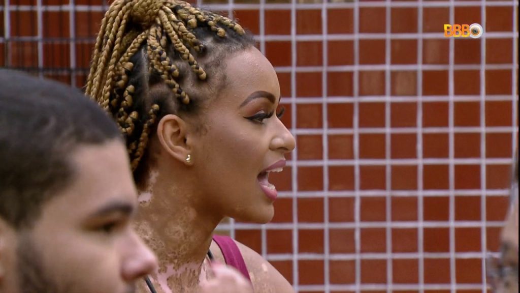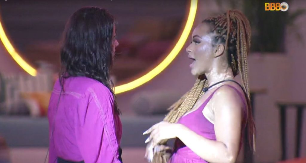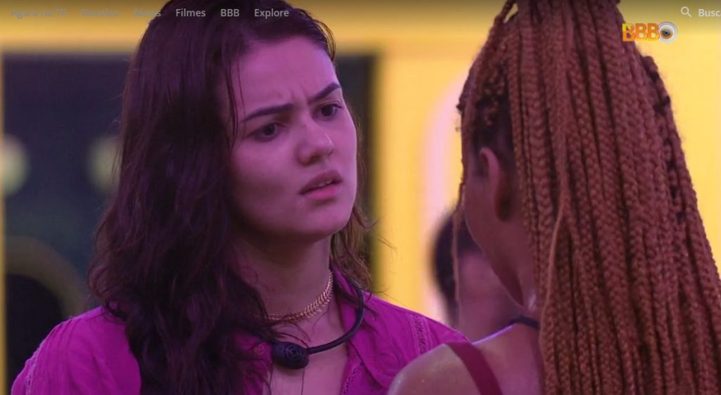Aí depois a moça estava na cozinha lavando louça com Vyni e disse que sentiu que Eslovênia não a queria no quarto. O brother negou e falou que não era isso, mas não contente ela foi tirar satisfações com a colega de confinamento.