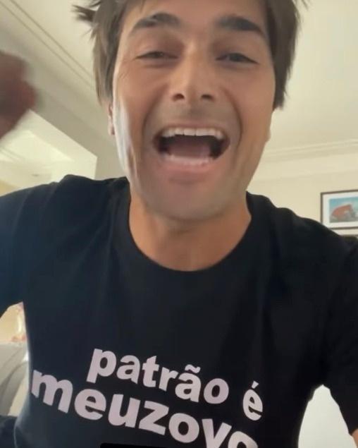 Na camiseta: “Patrão é meuzovo”. Foto: Reprodução.