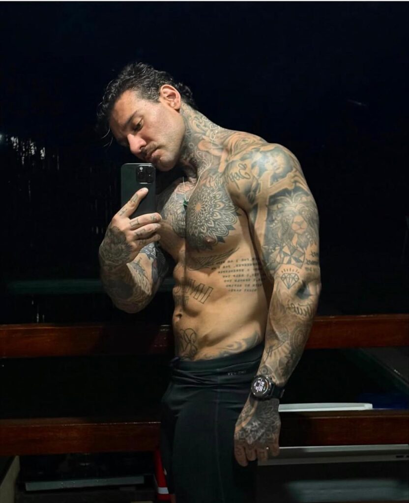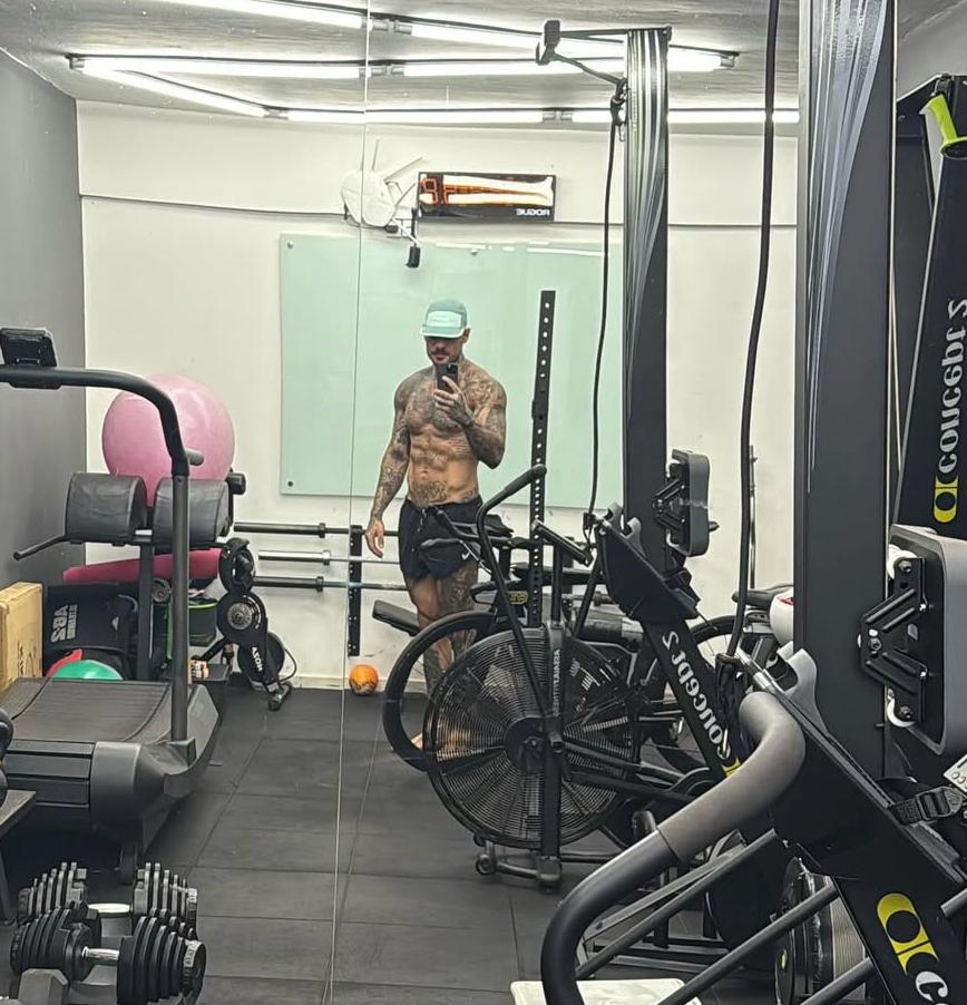 Ele fala do exercício como algo que organiza o pensamento, diminui a ansiedade e devolve sensação de comando sobre o próprio corpo. O cansaço físico virou aliado. O foco no movimento virou forma de calar o excesso de ruído interno. O shape, que antes era só vitrine, passou a representar disciplina diária e continuidade em meio ao caos emocional.