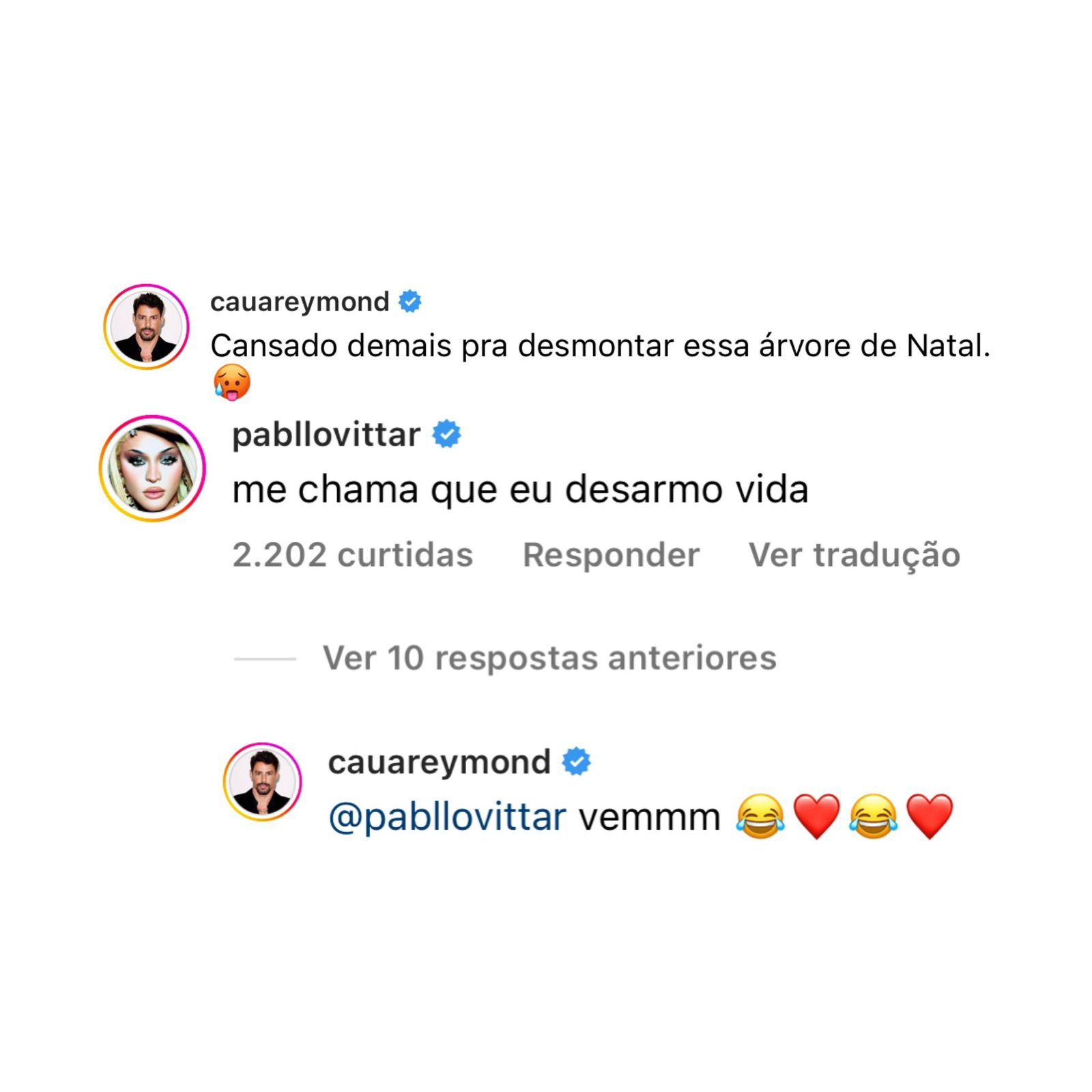 Cauã Reymond gosta de colocar a sua audiência para brincar com o imaginário. O ator publicou uma foto sem camisa para contar que estava cansado para desmontar sua árvore de Natal. Pabllo Vittar não perdeu tempo e se disponibilizou para ajudar.