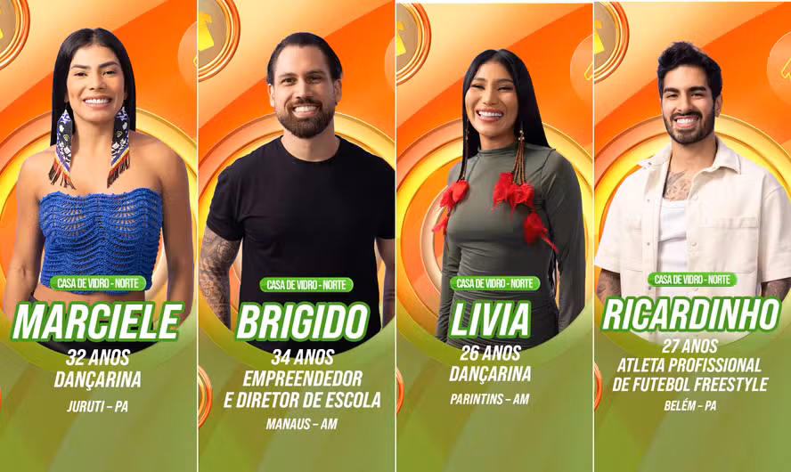 Kátia Flávia Brígido, Ricardinho, Lívia e Marciele na vitrine do BBB 26. O Norte já decidiu. E você? 09/01/2026 15h37