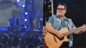 Kátia Flávia Marrone, dupla com Bruno, precisou levar alguns pontos na testa após cair do palco 11/05/2025 17h00
