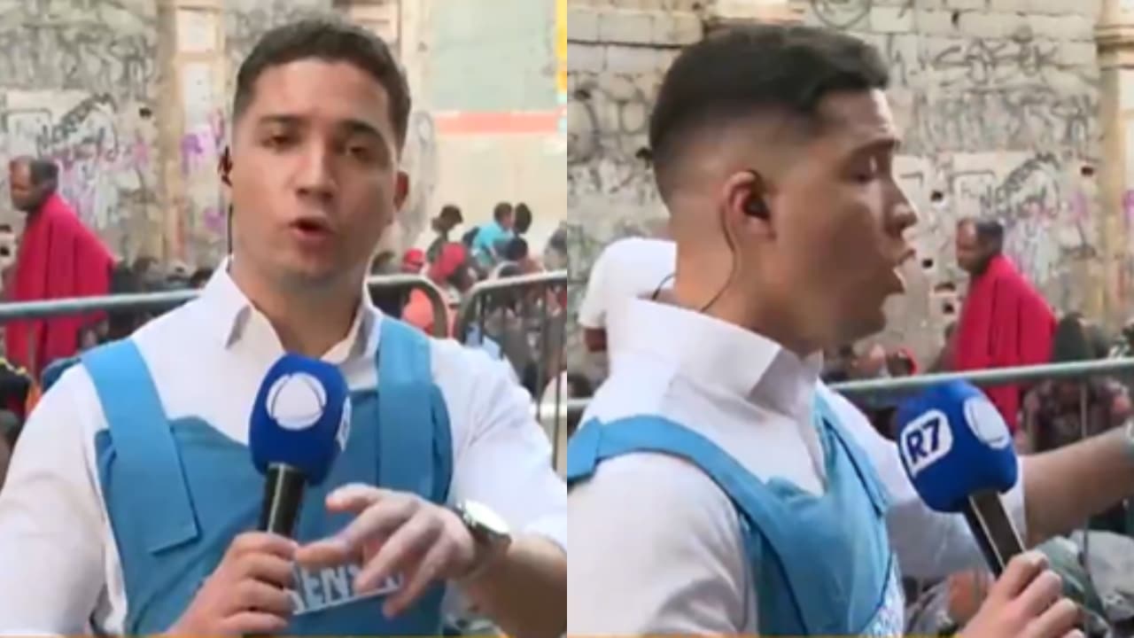 Kátia Flávia Repórter do Cidade Alerta é atingido por garrafa na cabeça durante reportagem ao vivo no centro de SP 20/07/2024 9h00