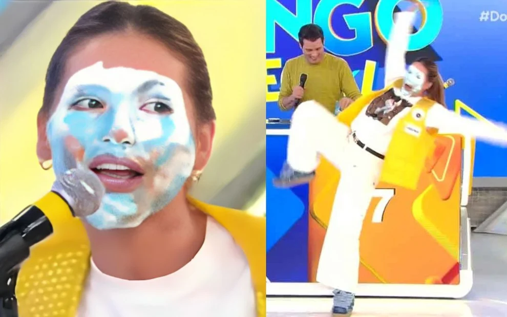 Kátia Flávia Virgínia que está grávida de 4 meses, escorregou e caiu durante a sua participação no ‘Passa ou Repassa’ do ‘Domingo Legal’ 14/04/2024 16h30