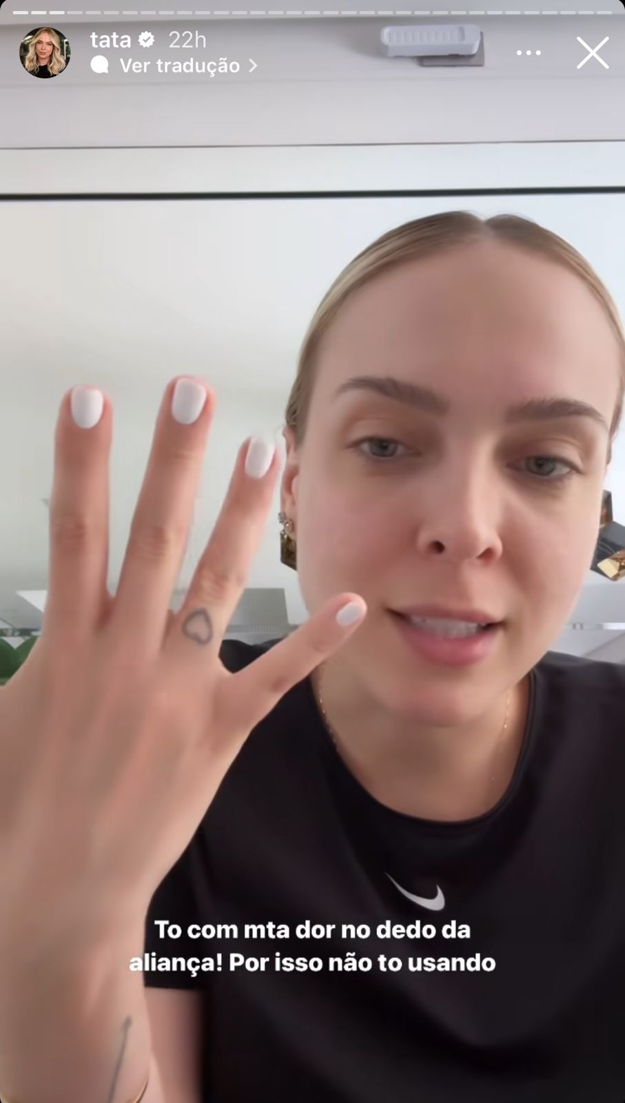 Kátia Flávia Tata Estaniecki revela porque não está mais usando sua aliança com Julio Cocielo 09/04/2024 18h00