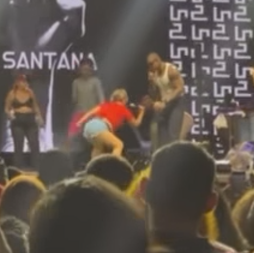Kátia Flávia Léo Santana expulsa mulher do palco por fazer gestos obscenos: “Aí já é falta de respeito. Respeite minha esposa” 24/07/2023 19h00