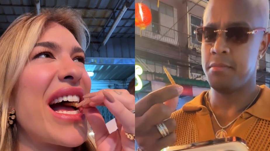 Kátia Flávia Lore Improta e Léo Santana experimentam minhocas na Tailândia: “Tipo snacks” 01/03/2023 12h00
