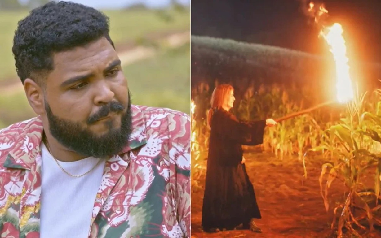 Paulo Vieira olha para os limites e ri na cara do perigo, né? O humorista global usou o seu Twitter para escancarar um erro na cena de Terra e Paixão em que a personagem de Gloria Pires coloca fogo em uma plantação de milho verde. Acontece que o fogo não pega em palha verde, apenas na seca.