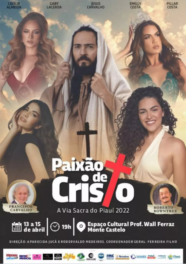 Amores, longe de mim de ser uma puritana, mas o estagiário que fez esse cartaz… Jesus apague a luz. A Paixão de Cristo em Teresina alcançou um outro patamar, digamos que com muita sensualidade. O cartaz do espetáculo gerou burburinho na internet e na cidade, pois trazia a imagem de Jesus no meio de mulheres com pouca roupa, e a roupa que tinham era bem sensual para a época.