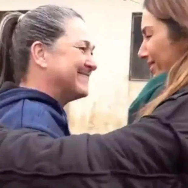 Logo depois, enquanto caminhava pelas ruas e reportava a destruição da região, a apresentadora acabou esbarrando com sua prima Nete, que prontamente abraçou. Muitos emocionadas, elas mantiveram o enlace por alguns segundos, manifestando a surpresa e felicidade do encontro. Depois de se afastarem, Nete não conseguiu conter as lágrimas e agradeceu à parente por vir.