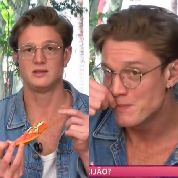 Mas uma coisa que chamou do público e dos internautas foi quando o loiro apareceu comendo mamão com requeijão, é isso mesmo que vocês estão lendo, meus amores. Mamão com requeijão e ele ainda colocou granola. Jesus, minha gastrite até atacou só de me imaginar provando isso.