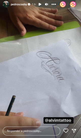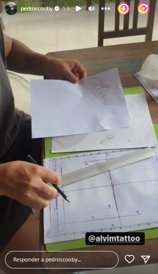 Em vídeo publicado nos stories, o ex-BBB mostra o tatuador Alvim, fazendo o esboço da tatuagem, que Pedro irá fazer.