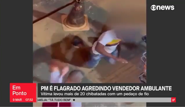 No último domingo (05), o policial militar, Wesley Pedraça, que estava de folga, foi flagrado dando mais de 20 chibatadas, com um pedaço de fio, em um vendedor ambulante, que estava esperando a entrega de um macarrão instantâneo, em frente a um estabelecimento, no centro de Goiânia – Goiás.