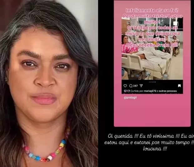 “Infelizmente ela se foi, perda muito triste, lutou muito”, dizia a publicação. Preta rebateu: “Oi, querida! Eu estou vivíssima, ainda estou aqui e estarei por muito tempo. Que loucura”, disse a artista.