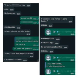 Nas mensagens enviadas para a aluna, a docente como aconteceu o tal beijo nos mínimos detalhes e afirmou que apenas o beijou, mas deixou claro o desejo de ter relações mais íntimas com ele. Ela também assume que tem interesse em outros alunos, os chamando de “gostosinho” e “gatinho” e chegando até a pedir a rede social de um deles para a aluna com quem conversava na rede social.