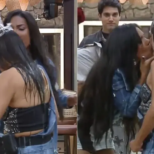 Carol Lekker jogou água na cabeça de Yoná e depois tascou um selinho.