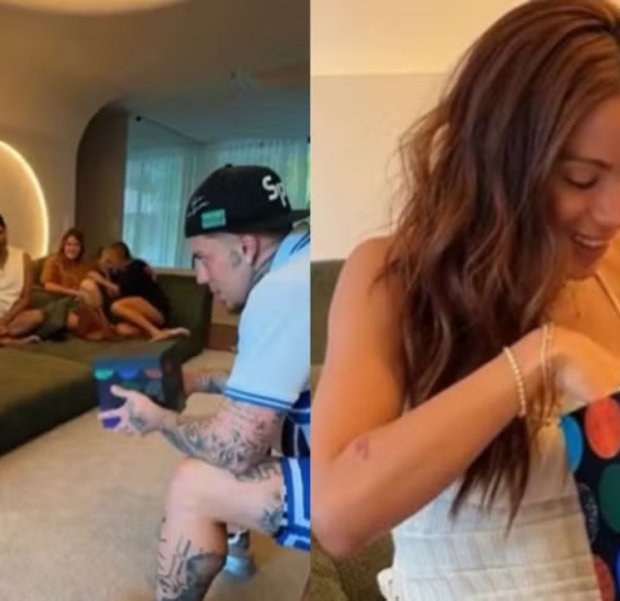 O funkeiro entregou uma caixa para Anitta contendo uma roupinha de bebê, imagens de ultrassom e uma camiseta com o questionamento: “Obrigado por tudo, antes mesmo de me conhecer. Você aceita ser minha dinda?”.