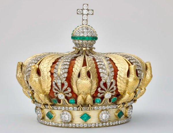 - Além de um broche com mais de dois mil seiscentos e trinta e quatro diamantes da imperatriz Eugênia. Para piorar a humilhação, a coroa de esmeraldas e diamantes da imperatriz foi encontrada jogada numa rua de Paris.