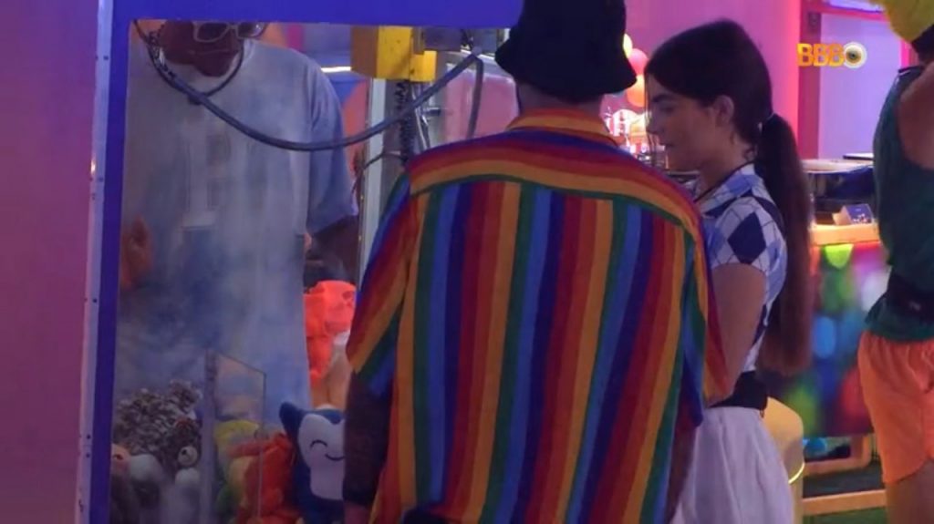 O casal ficou junto a festa toda, com direito a brincarem na máquina de pegar pelúcias e até empurrãozinho na piscina de bolinhas — e até rolou uma aposta, no qual PA perdeu, e a moça afirmou que agora o atleta fará tudo que ela quiser. Hmmmm tudo Jadoca?