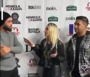 Em trecho do vídeo que viralizou, a repórter aparece de costas para Juliano enquanto questiona se Henrique poderia cantar um pedaço de uma de suas músicas para a entrevista.