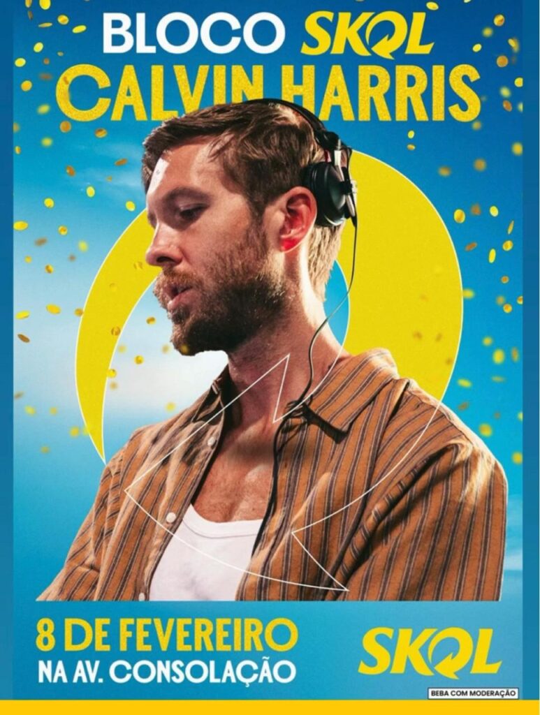 A cena é clara na minha cabeça. Calvin Harris, que costuma reinar em festivais com nome em inglês e ingresso parcelado em doze vezes, agora reinando no asfalto paulista, olhando para um mar de gente como quem pensa “ok, cheguei no auge”. A Skol bancou o delírio e colocou o DJ para liderar o Bloco Skol no dia 8 de fevereiro, misturando música eletrônica global com o caos delicioso do Carnaval brasileiro.