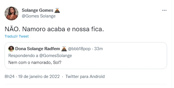 Uma seguidora ainda questionou sobre se deixar filmar se estiver em um relacionamento e Solange foi categórica: “NÃO, namoro acaba, nossa fica”!