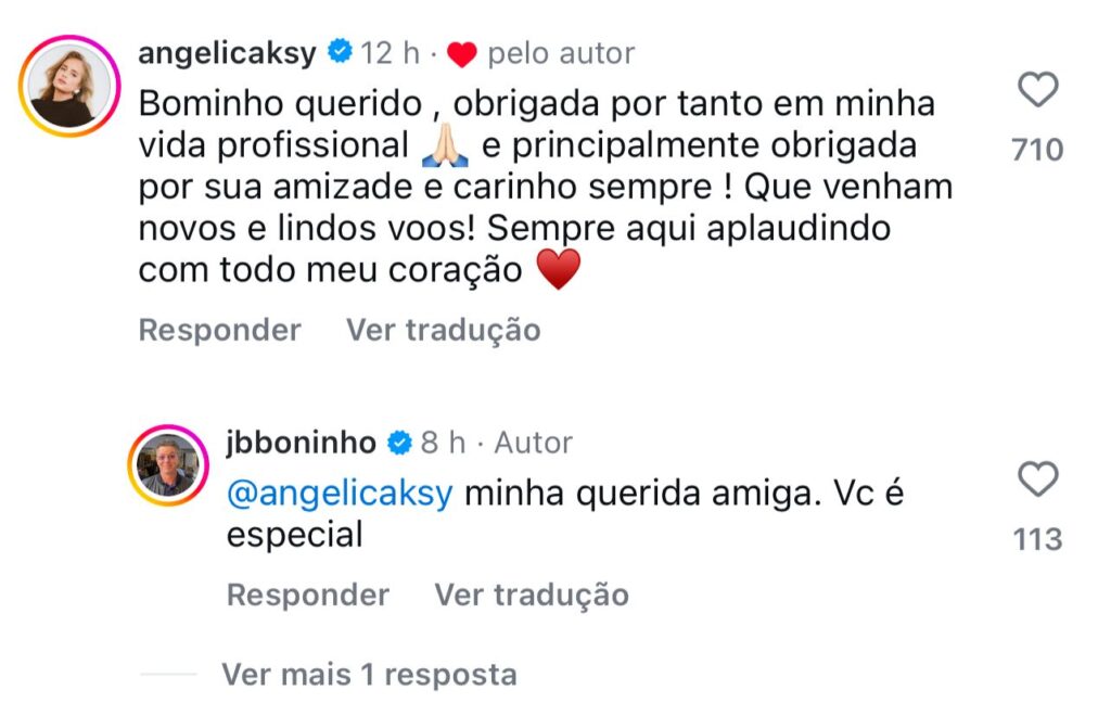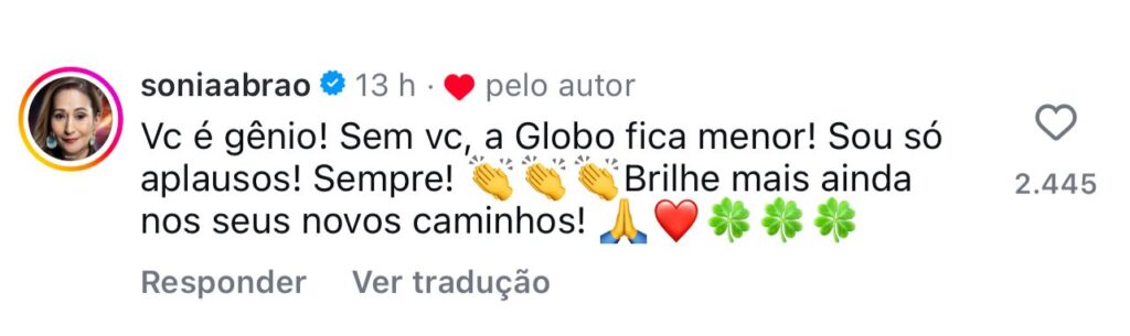 E olhando o Instagram dele, vi alguns depoimentos na publicação sobre sua saída da emissora. Dentre eles, da Angélica e da apresentadora Sonia Abrão.