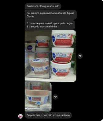 Ontem (17) viralizou um print nas redes sociais, onde um internauta denuncia o fato de que cremes faciais, especiais para pele negra, estavam sendo colocados trancados em uma caixa de proteção, contra roubo, enquanto os cremes para pele branca estão livres de proteções nas prateleiras.