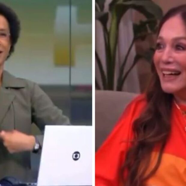 Após receber elogios da jornalista, a atriz brincou: “A gente está junto na Globo desde 1912”, arrancando gargalhadas dos apresentadores. E seguiu: “A gente não mudou nada. Você tá igualzinha”.