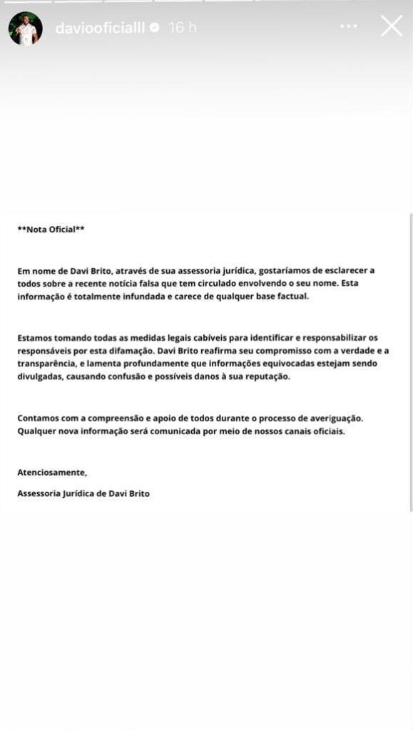 “O Poder Judiciário acolheu o pedido e concedeu as medidas solicitadas. O caso segue sob investigação e mais informações acerca do caso não poderão ser divulgadas no momento. O caso aconteceu no último dia 15 de julho, de acordo com o documento obtido pelo F5.